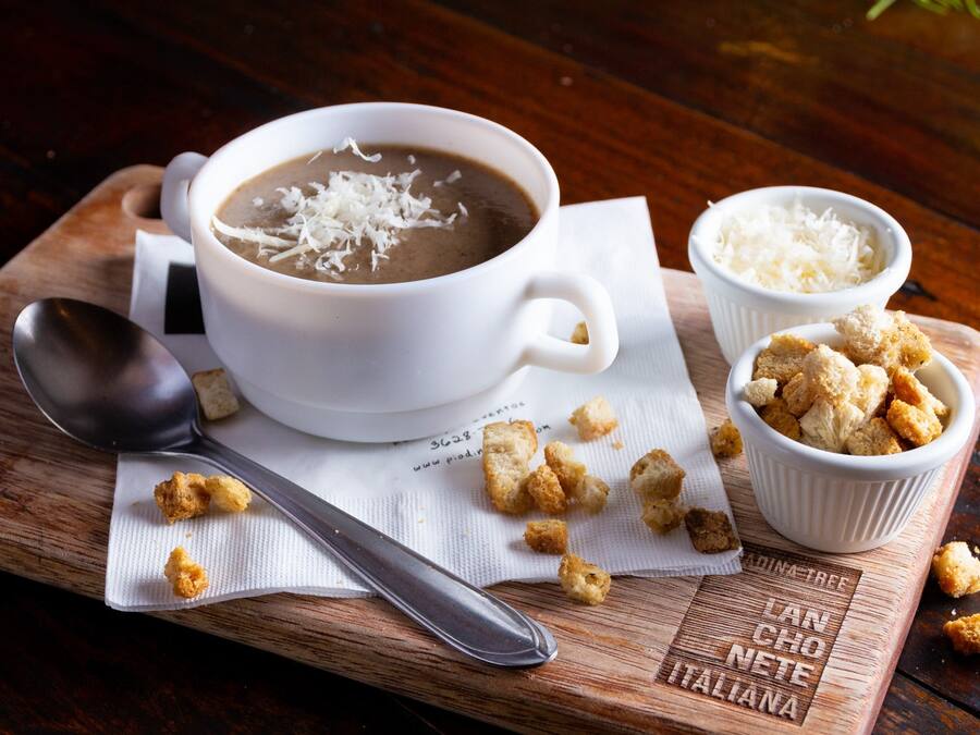 Para aqueles que procuram uma refeição leve e cheia de sabor. Creme de shimeji fresco e funghi secchi acompanhado de croutons caseiros e parmesão. 360 ml